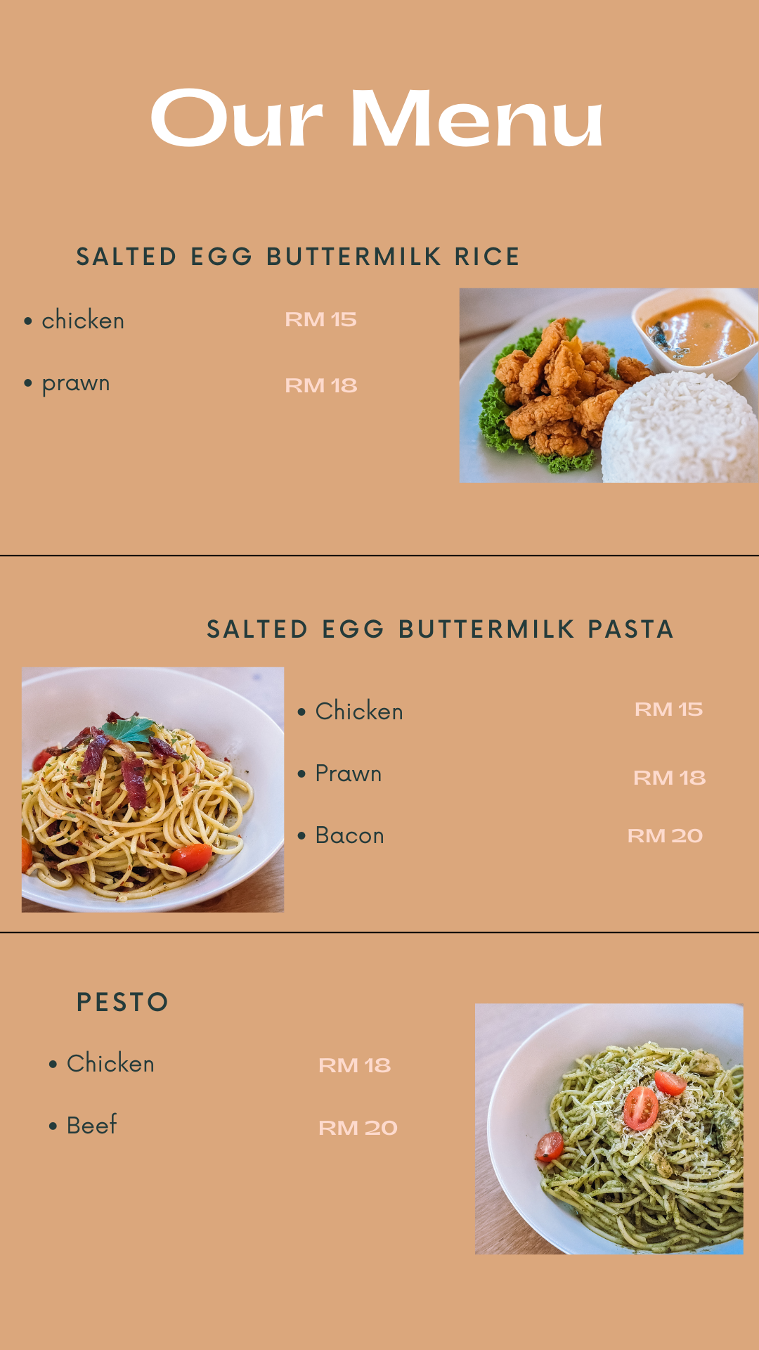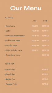 Minimalist cafe located in the heart of Wangsa Maju. Come over to enjoy cup of coffee, tea, cakes and while you’re here, enjoy our various food from hot kitchen like salted egg buttermilk chicken with rice, chicken alfredo and the list goes on..