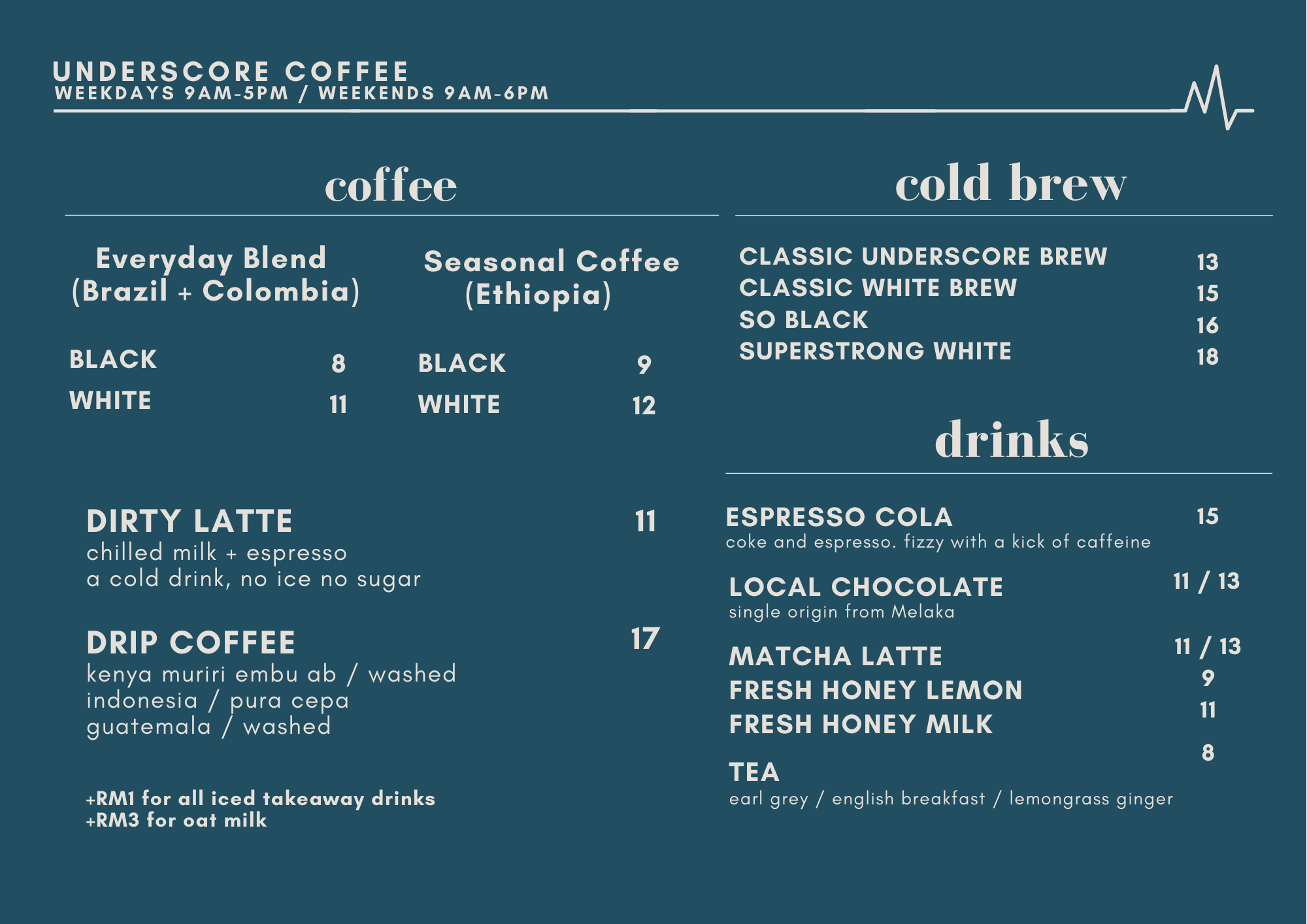 A little coffee shop tucked in the quiet neighborhood of Ara Damansara, PJ. We brew delicious coffee – blends, single-origin espressos, cold brews, filters & drips. We also serve some simple breakfast, brunch, lunch, pastries, cakes & loaves.